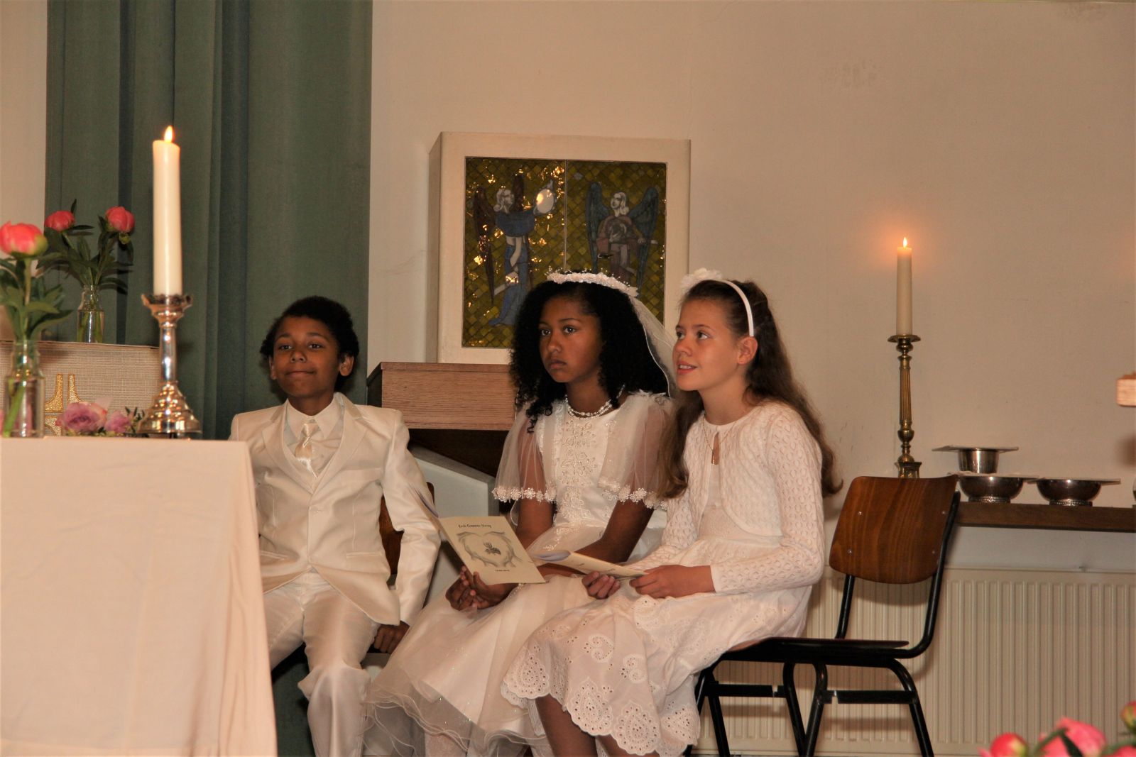 Luciana uit Halfweg-Zwanenburg en Izabella, Marcuz, Dico en Thimas uit Vijfhuizen hebben zondag 19 mei hun Eerste Communie gedaan. In de St. Augustinuskerk in Vijfhuizen waren zij voor de eerste keer gast aan de tafel van de Heer.