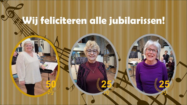 Bij elkaar 100 jaar zangkunst en bij elkaar vele vrijwillige uren die ze hebben ingezet tijdens repetities en bij de ondersteuning van de vieringen.