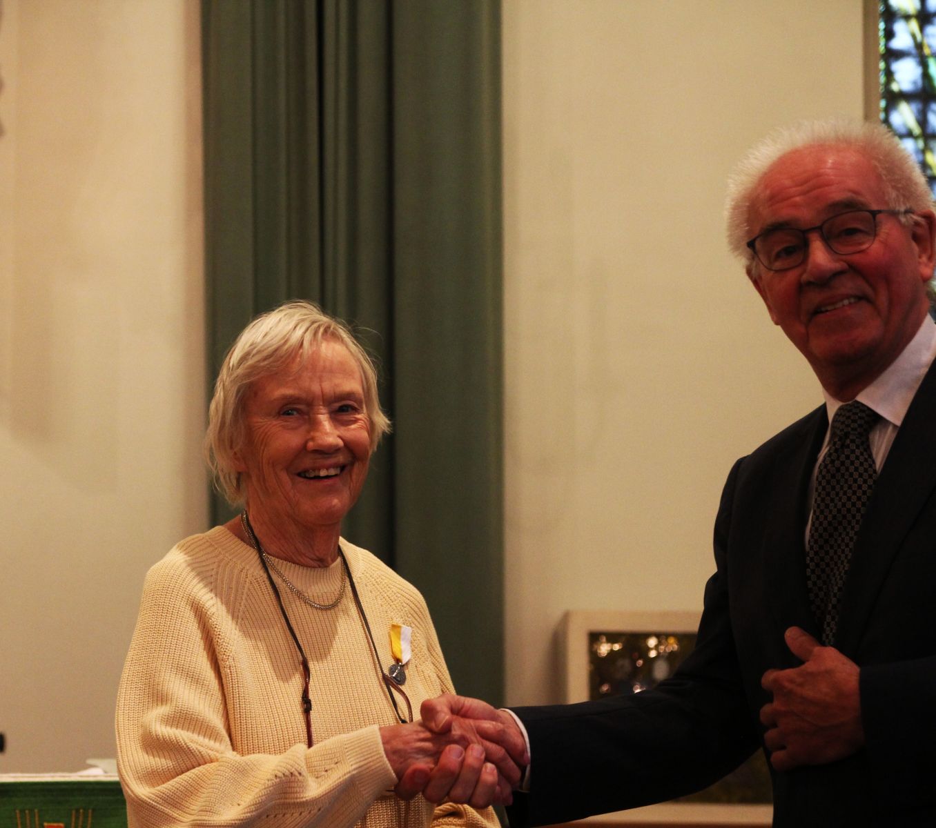 Aan het eind van de viering van zondag 5 oktober, vocaal ondersteund door ‘haar’ Gemengd Koor, heeft Ria Willemse de eremedaille in zilver van de Nederlandse Sint-Gregoriusvereniging uitgereikt gekregen. Dit vanwege 25 jaar lidmaatschap.