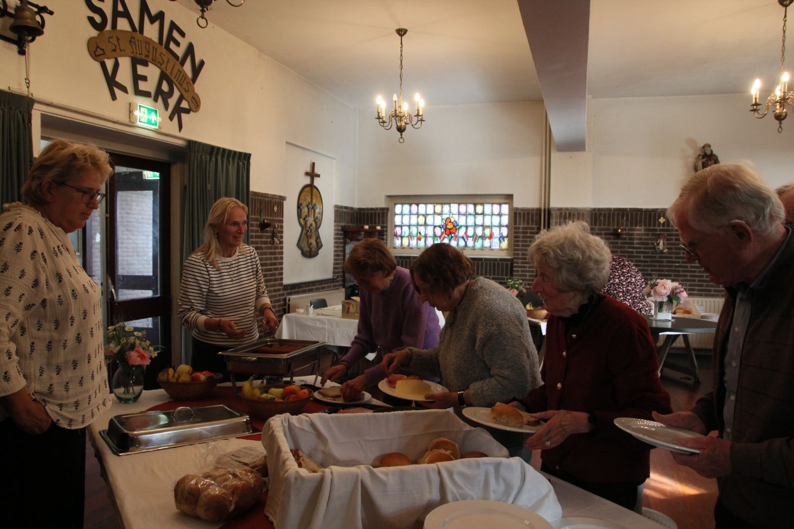 Buiten is storm Benjamin op z’n retour. Ten teken daarvan kruipt de wijzer van de barometer langzaam richting hogere luchtdruk. Binnen in de Augustinuskerk is die op 24 oktober hoog en dat blijft zo. Oorzaak: de 46ste Seniorendag is in volle gang. De jaarlijkse ontmoetingsdag valt bij de talrijke bezoekers opnieuw reuze in de smaak al zit er voor de organisatoren een vlek op omdat hun maatje Trudy er voor de eerste keer niet meer bij is.